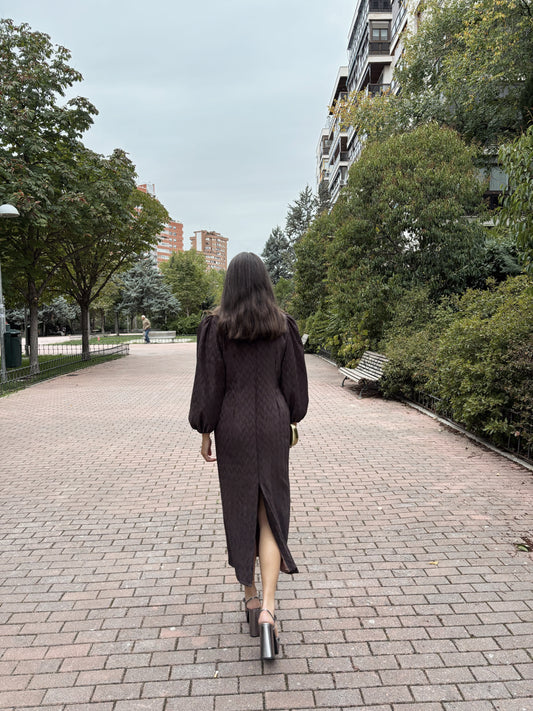 Vestido Manga Abullonada marrón